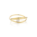 Representing the paths that cross and the stories that merge across time and space: a 0.10ct diamond floats between intersecting golden rings. Our Parallax Ring intrigues and astonishes.